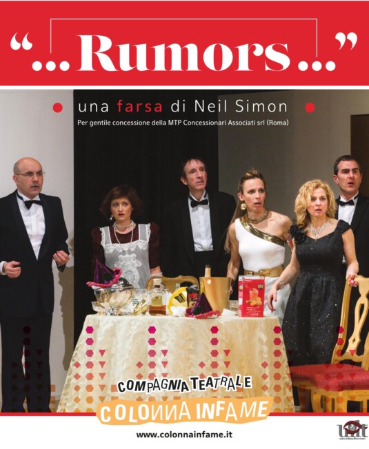 Farsa brillante che scivola tra equivoci e situazioni paradossali, “Rumors” nasce dal genio del pluripremiato Neil Simon, autore di oltre 29 commedie campioni d’incassi a Broadway. Scritta e rappresentata nel 1988, la commedia prende avvio da un evento inaspettato che innesca una serie di situazioni esilaranti.